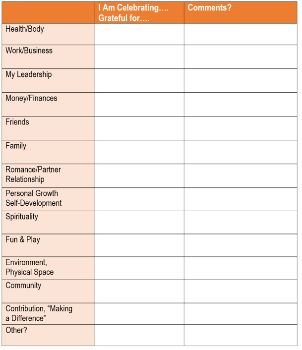 Here are thought starters for your own Celebration Inventory: